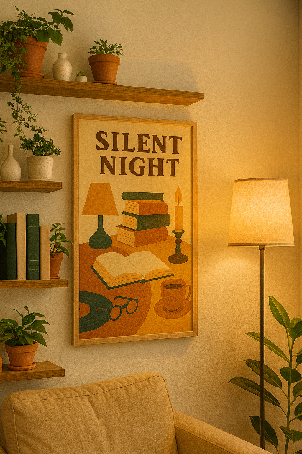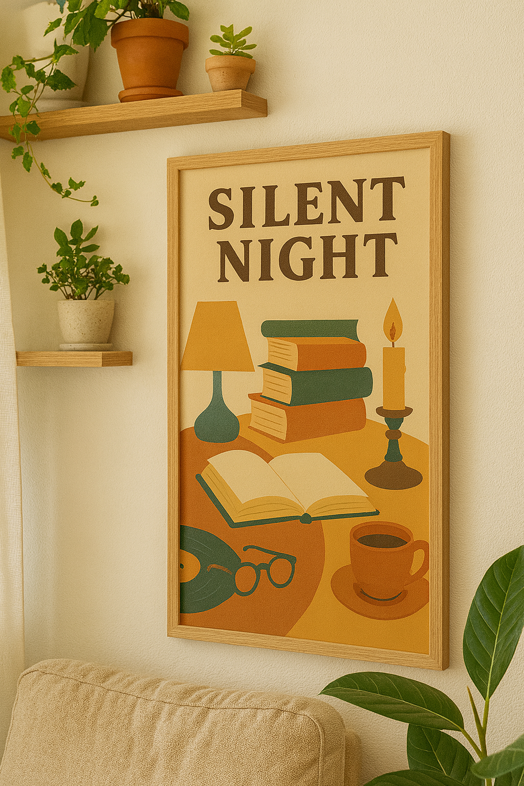 ✨ Ready to print and bring the nostalgic warmth of quiet nights into your space. 📚☕🕯️