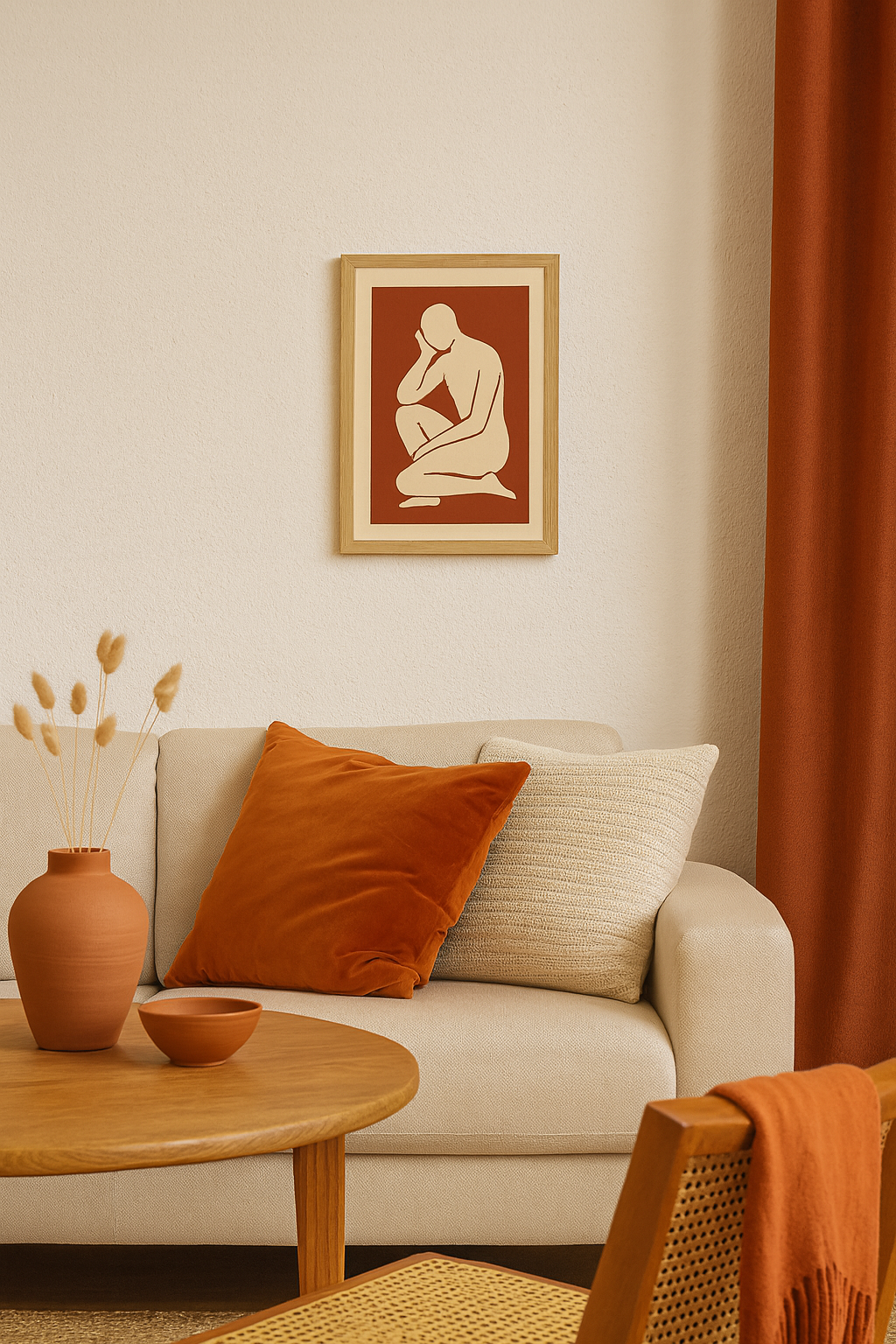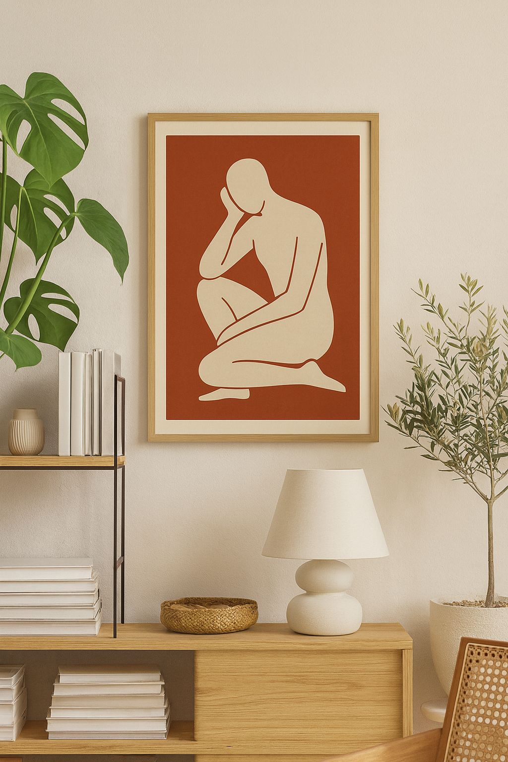 Elevate your space with this Terracotta Abstract Figure digital poster ā a modern minimalist silhouette set against a rich earthy background. Its warm, neutral tones and clean lines bring calm and sophistication, making it a perfect piece for living rooms, bedrooms, or entryway.